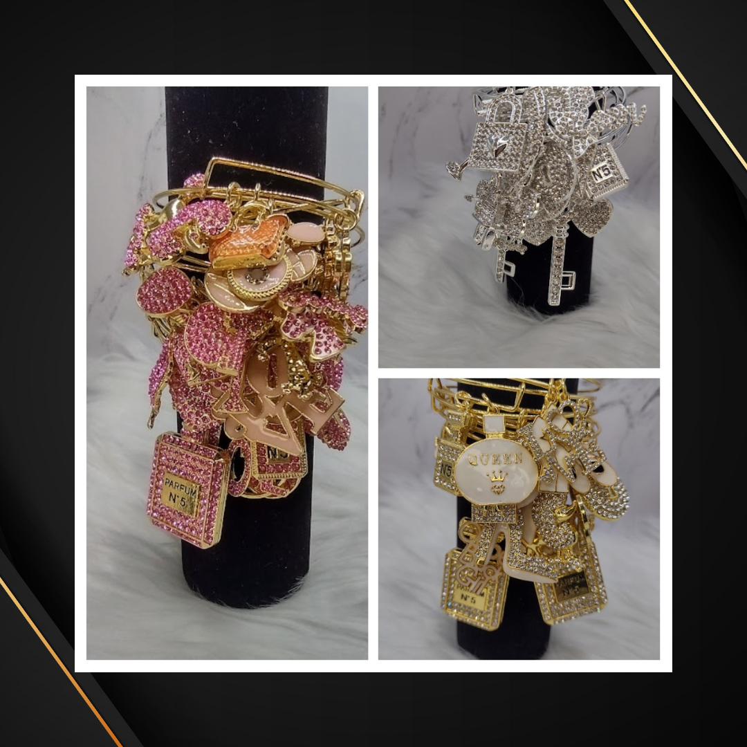 Introducing Bling Bangle's random charm adjustable bracelets, for when you want to exude sass and style like royalty! Feel like the queen or boss you are with your choice of regal emblem. Whether you're tryin' to give off 'queen' vibes or 'boss' energy, these blingy bangles got you covered!