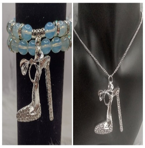Designer Charm Necklace & Stretch Bracelet Set